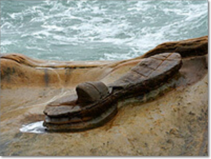 생강 바위의 한 종류이며, 형성 원인은 칼슘 성분의 돌덩이 주변이 부드러운 암층으로 되어있으며, 침식작용으로 인해 가로와 세로로 교차하는 무늬를 만들어 지금과 같은 신발 형태를 갖추었답니다.